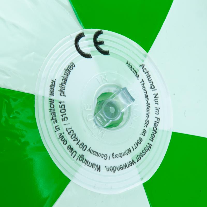 Dwukolorowa dmuchana piłka plażowa, wykonana z PVC, nie zawiera ftalanów. Długość panelu: 40 cm (średnica ~26 cm).