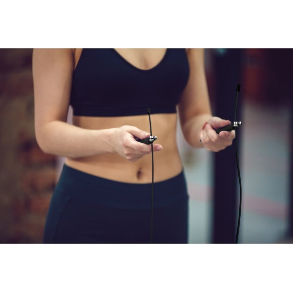 Profesjonalna skakanka z możliwością regulacji długości i metalowymi łożyskami do szybkich obrotów. Rączki ze stali nierdzewnej, linka stalowa wyposażona w powłokę ochronną.