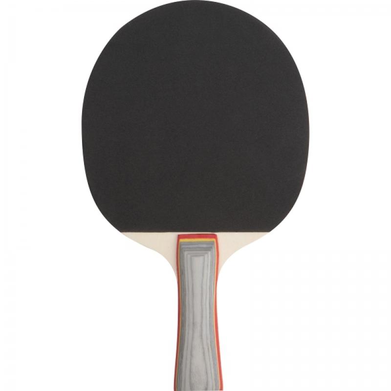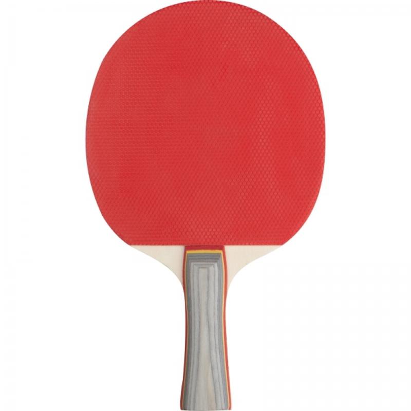 Zestaw do gry w ping ponga, zapakowany w tekturowy kartonik. W skład zestawu wchodzą 2 paletki, 3 białe i 2 pomarańczowe piłeczki.