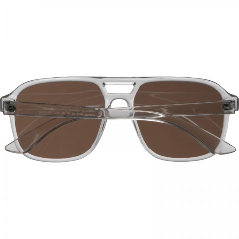 Okulary przeciwsłoneczne z przezroczystymi oprawkami i kolorowymi szkłami, wykonane z RPET. Ochrona UV400, filtr 3 kategorii.