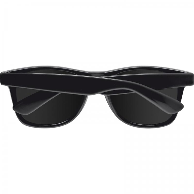 Okulary przeciwsłoneczne z plastiku i akrylu. Posiadają certyfikat potwierdzający ochronę przed promieniami słonecznymi 400 UV, filtr klasy 3.