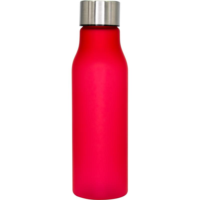 Butelka o pojemności 550 ml, wykonana z przyjemnego w dotyku plastiku z gumowym wykończeniem i metalową zakrętką.