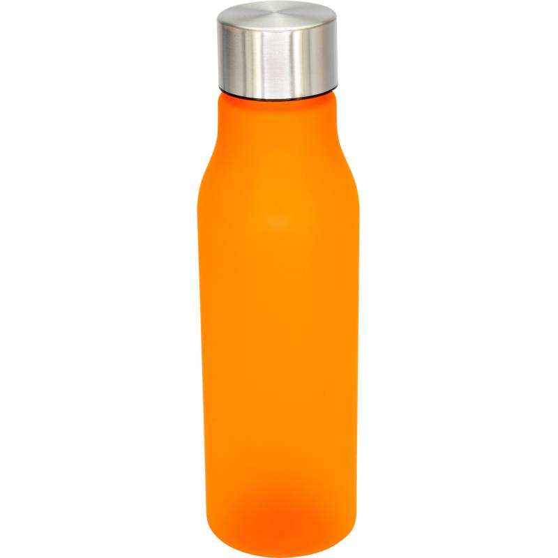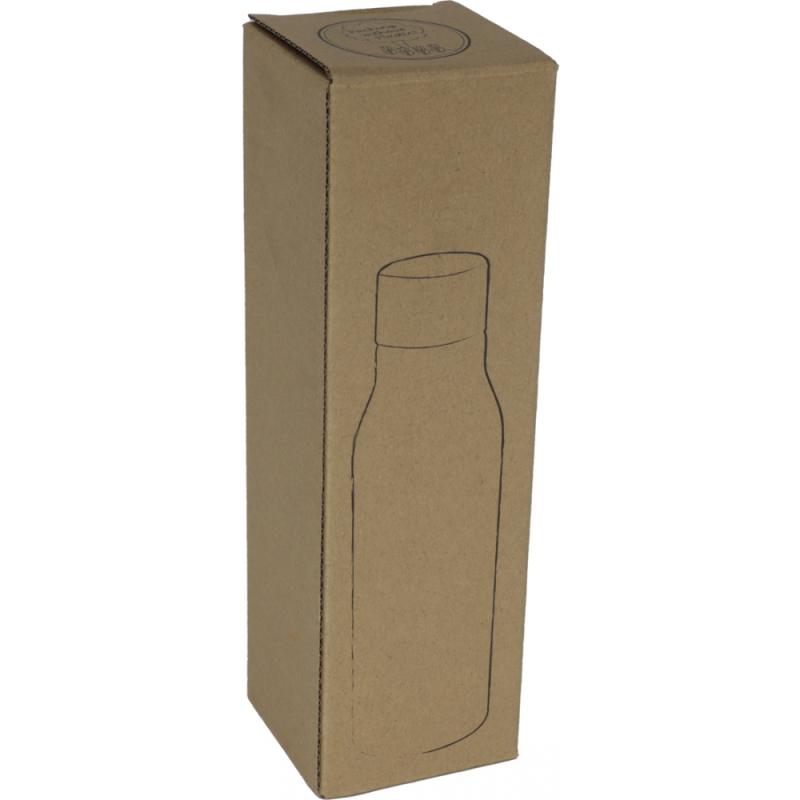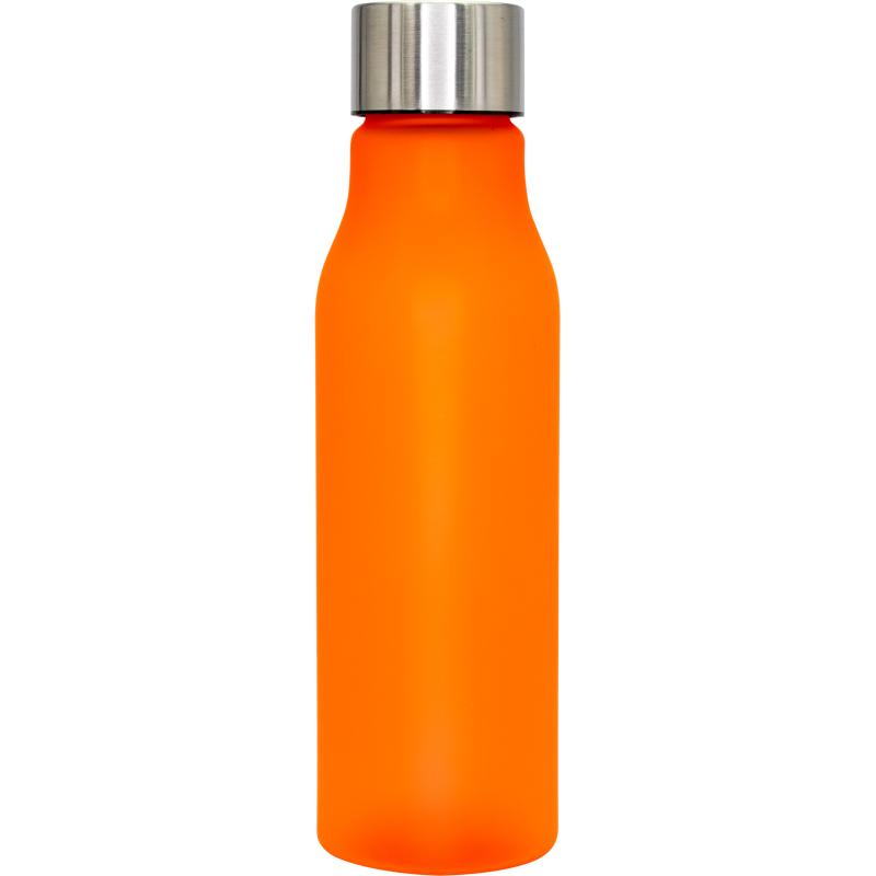 Butelka o pojemności 550 ml, wykonana z przyjemnego w dotyku plastiku z gumowym wykończeniem i metalową zakrętką.