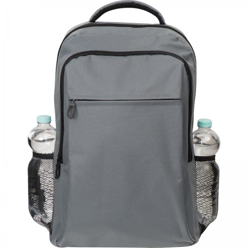 Plecak wykonany z poliestru 600D i 300D, zapinany na zamek, z kieszeniami bocznymi z siatki. W wewnętrznej komorze plecaka można przenosić laptop.