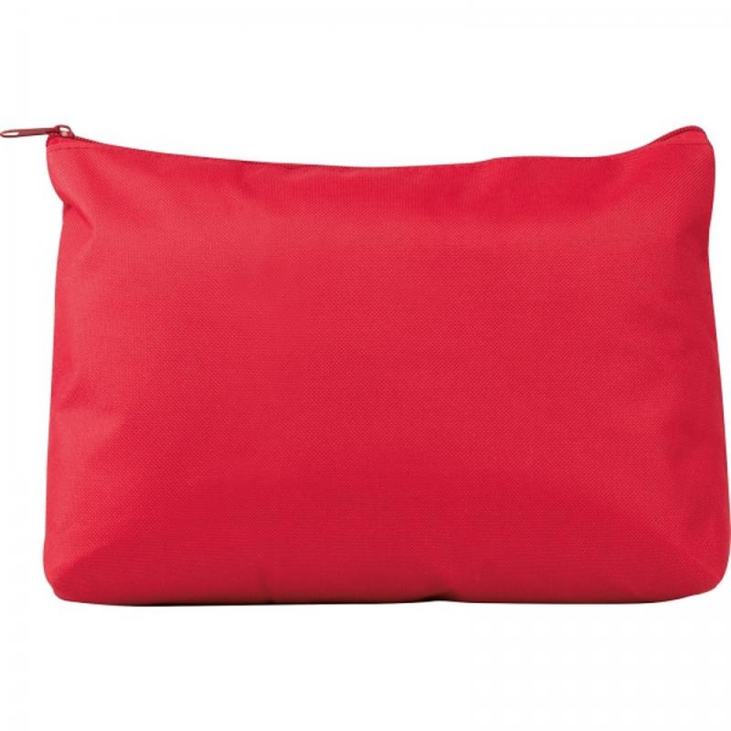 Kosmetyczka wykonana z poliestru, zapinana na zamek błyskawiczny.