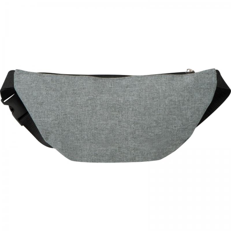 Saszetka nerka na pasku, wykonana z poliestru. Posiada przegrodę główną i dodatkową kieszonkę z przodu - obydwie zamykane na zamek.