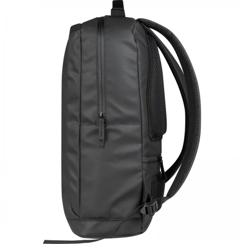 Wysokiej jakości, wodoodporny plecak, wykonany z materiału 600 DPU, ze wzmacnianymi, oddychającymi szelkami. Posiada boczną i wewnętrzną kieszeń oraz przegródkę antykradzieżową. Odpowiedni dla laptopów do 15,8`.