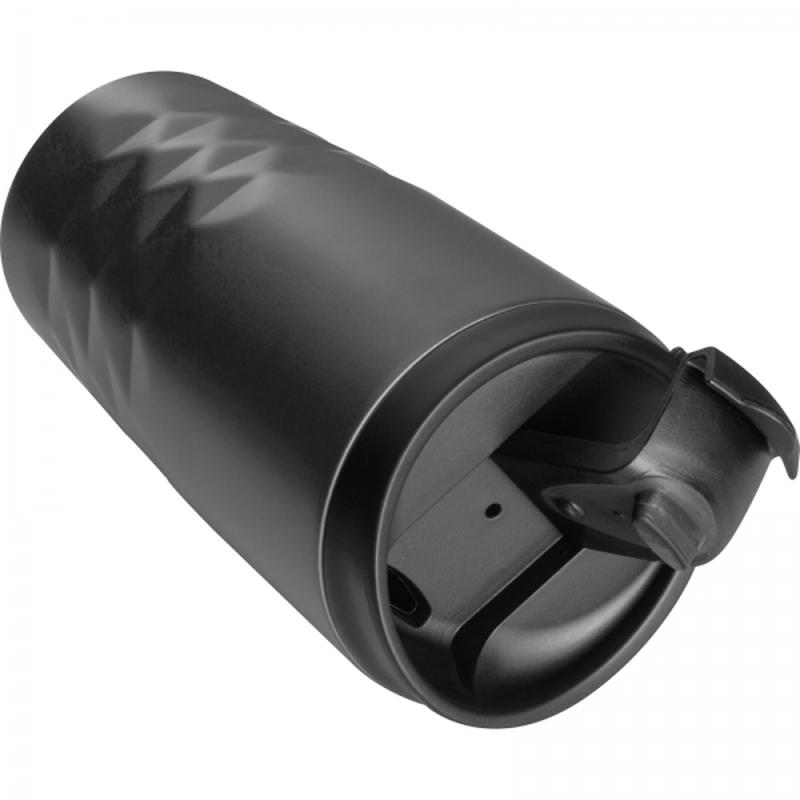 Kubek ze stali nierdzewnej, z podwójnymi ściankami (izolacja próżniowa) i plastikową zakrętką z otworem do picia. Utrzymuje ciepłą temperaturę napoju do 12 godzin, a zimną - do 18. Pojemność 300 ml.