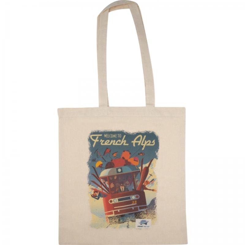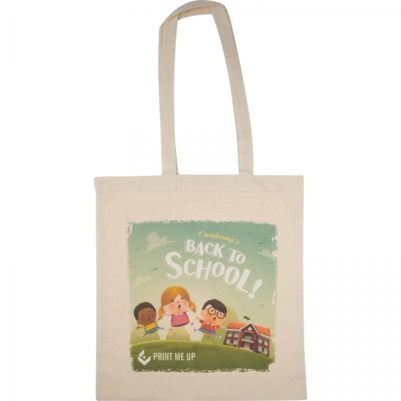 Bawełniana torba z długimi uszami, w naturalnym kolorze. Gramatura 140 g/m², długość ucha to ok. 77 cm). Posiada certyfikat Oeko-Tex STANDARD 100.