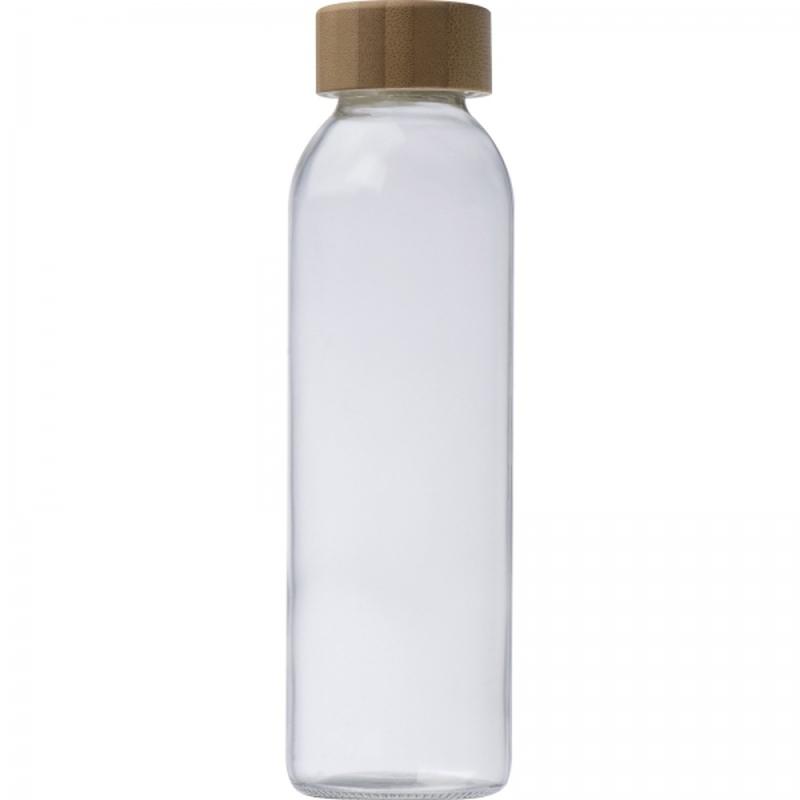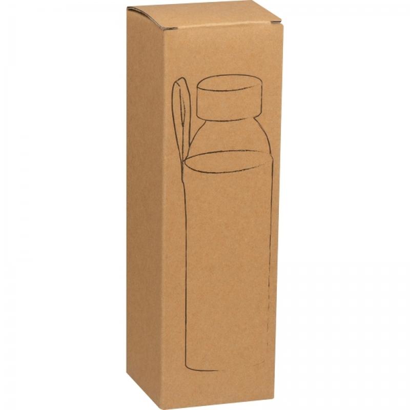 Szklana butelka z bambusową zakrętką, umieszczona w jutowym pokrowcu. Pojemność 500 ml.