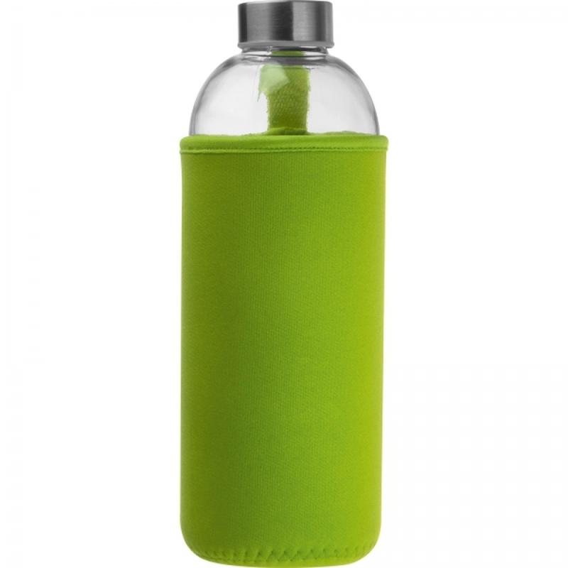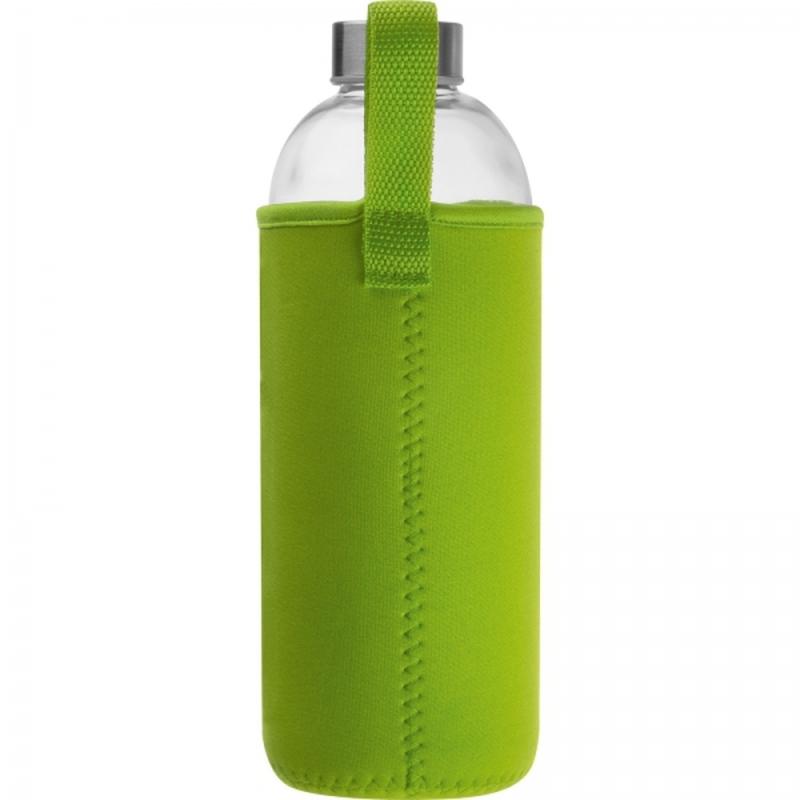 Szklana butelka o pojemności 1000 ml w neoprenowym etui, z zakrętką ze stali nierdzewnej.