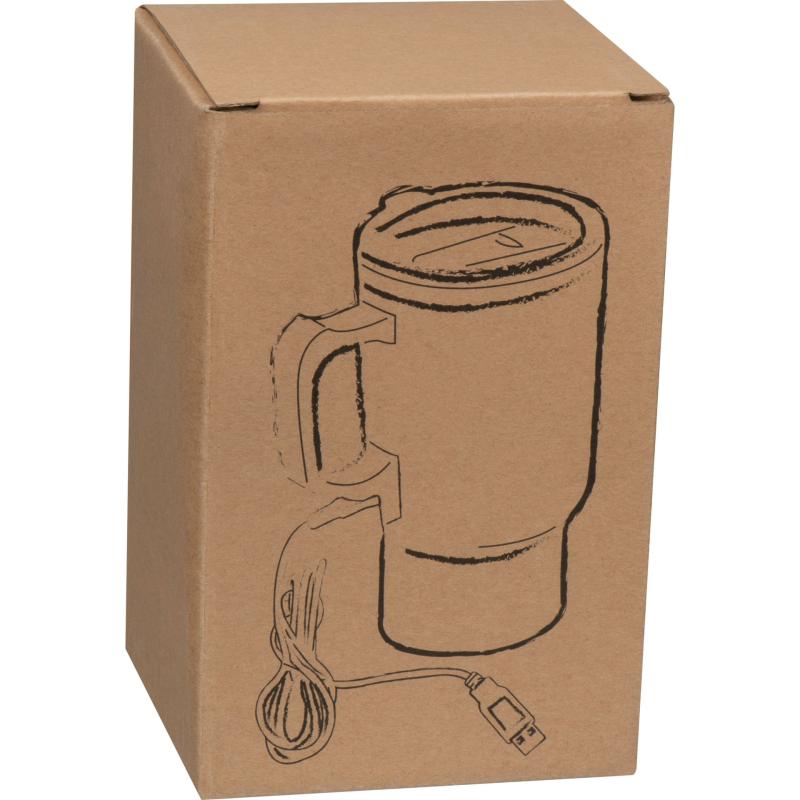 Kubek termiczny, wykonany ze stali nierdzewnej o pojemności 400 ml. Dzięki kabelkowi z wtyczką USB pozwala na podgrzanie napoju w biurze czy w samochodzie.