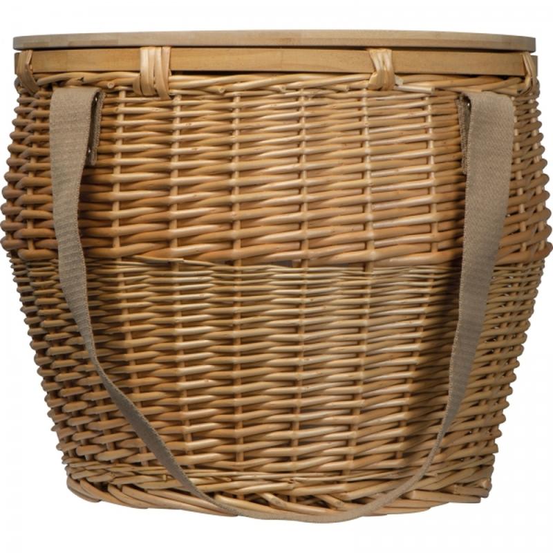 Kosz piknikowy o unikalnym kształcie z dużą powierzchnią chłodząca. Bambusowe wieczko może służyć jako taca lub deska do krojenia.