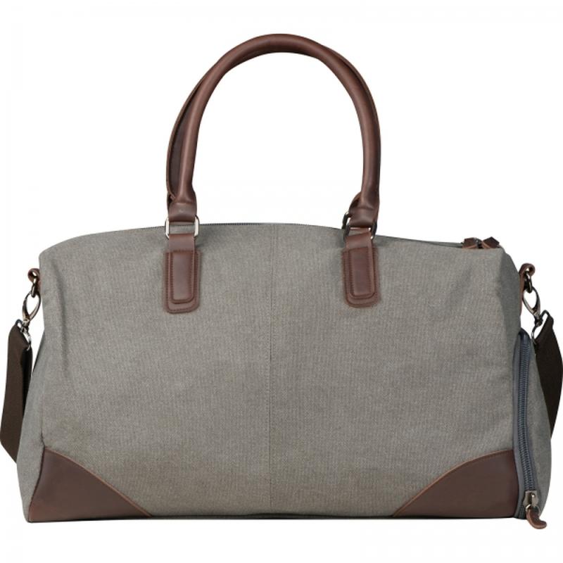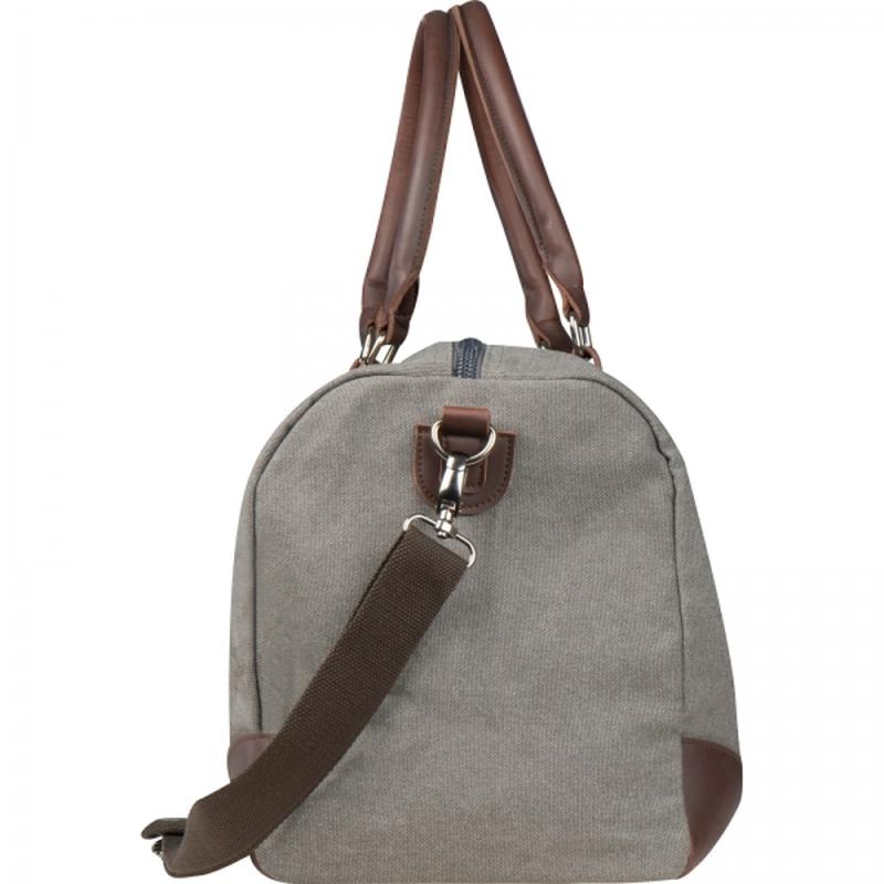 Stylowa i użyteczna torba podróżna marki Mark Twain, wykonana wytrzymałego płóciennego materiału z kontrastującymi wstawkami z ekoskóry. Posiada długi, odpinanay pasek do noszenia na ramieniu.