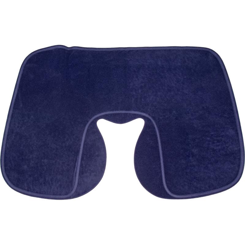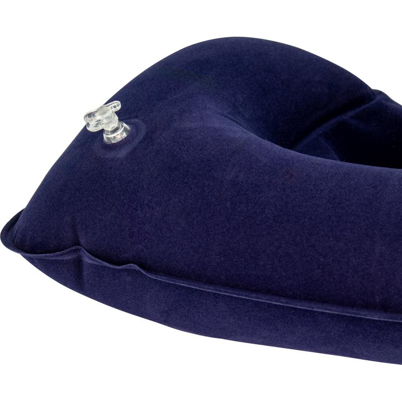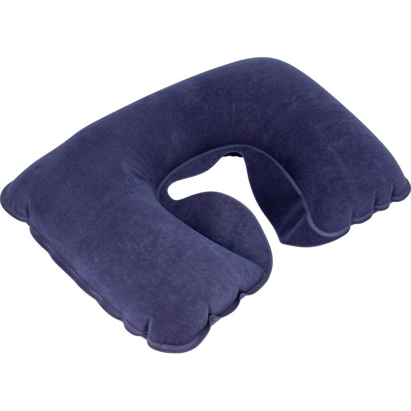 Welurowa, dmuchana poduszka podróżna o ergonomicznym kształcie. Wymiary na płasko: 41,5 x 26,5 cm, wymiary po napompowaniu: 34 x 25 x 10 cm.