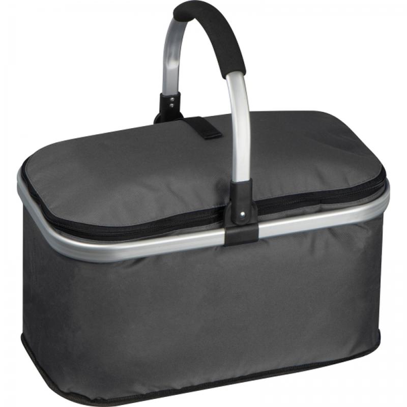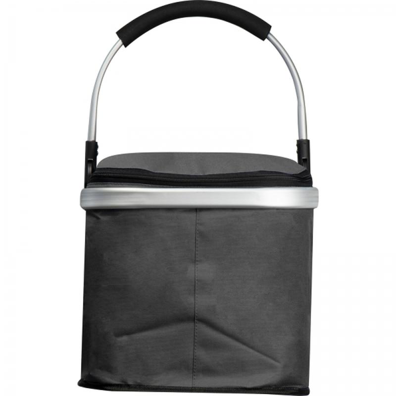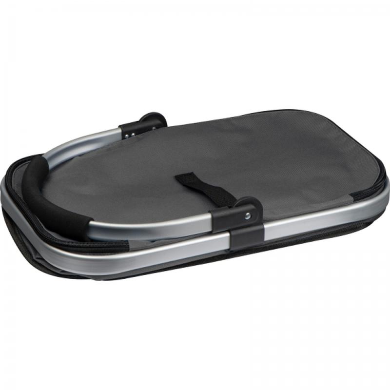 Koszyk na zakupy wykonany z poliestru z rączką z aluminium. Można w nim nosić nawet 15 kg. Warstwa wewnętrzna z materiału termoizolacyjnego utrzymuje temperaturę. Możliwość złożenia aluminiowego uchwytu lub całego koszyka.