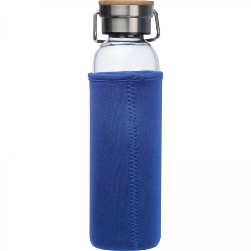 Szklana butelka o pojemności 600 ml, z pokrywką ze stali nierdzewnej i bambusowym zamknięciem. Butelkę przed uszkodzeniami chroni neopropanowe etui.