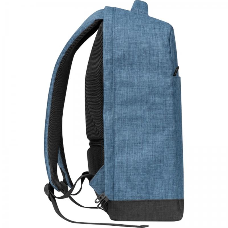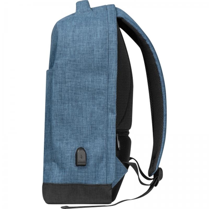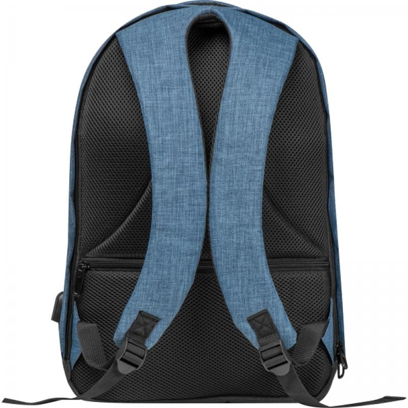 Plecak wykonany z poliestru 600D z wyjściem na kabel USB, przegrodą na laptopa, wyściełanymi, oddychającymi szelkami i przednią przegrodą antykradzieżową.