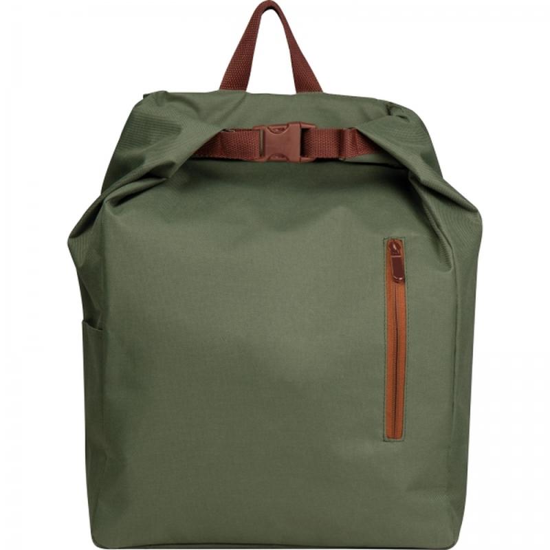 Plecak wykonany z RPET z dedykowaną przegrodą na laptopa, przednią kieszenią na zamek błyskawiczny i rolowanym zamknięciem.