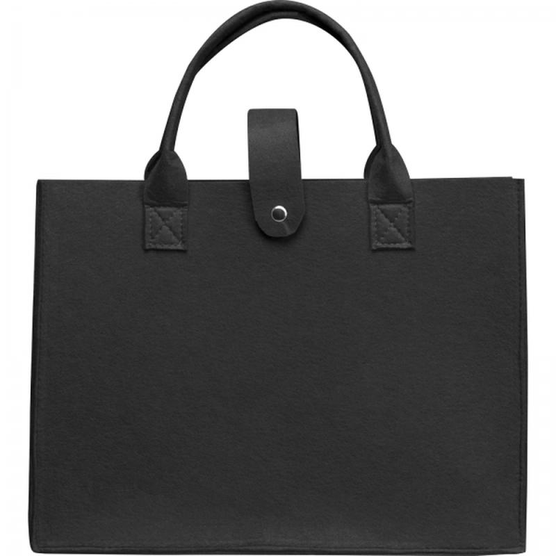 Torebka wykonana z filcu RPET z szerokim dnem i zamknięciem na zatrzask.