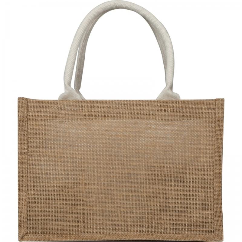 Jutowa torba z wytrzymałymi uchwytami. Torba na przodzie ma bawełnianą wstawkę z nadrukiem do kolorowania. W zestawie znajdują się kredki do kolorowania.