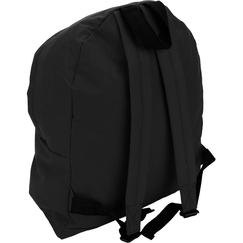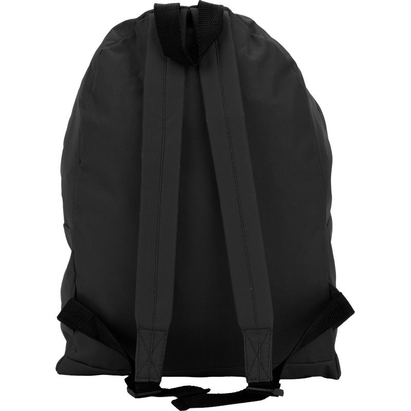 Duży, praktyczny plecak wykonany z mocnego poliestru, wyposażony w miękkie, wygodne paski na ramiona oraz dodatkową kieszeń z przodu.