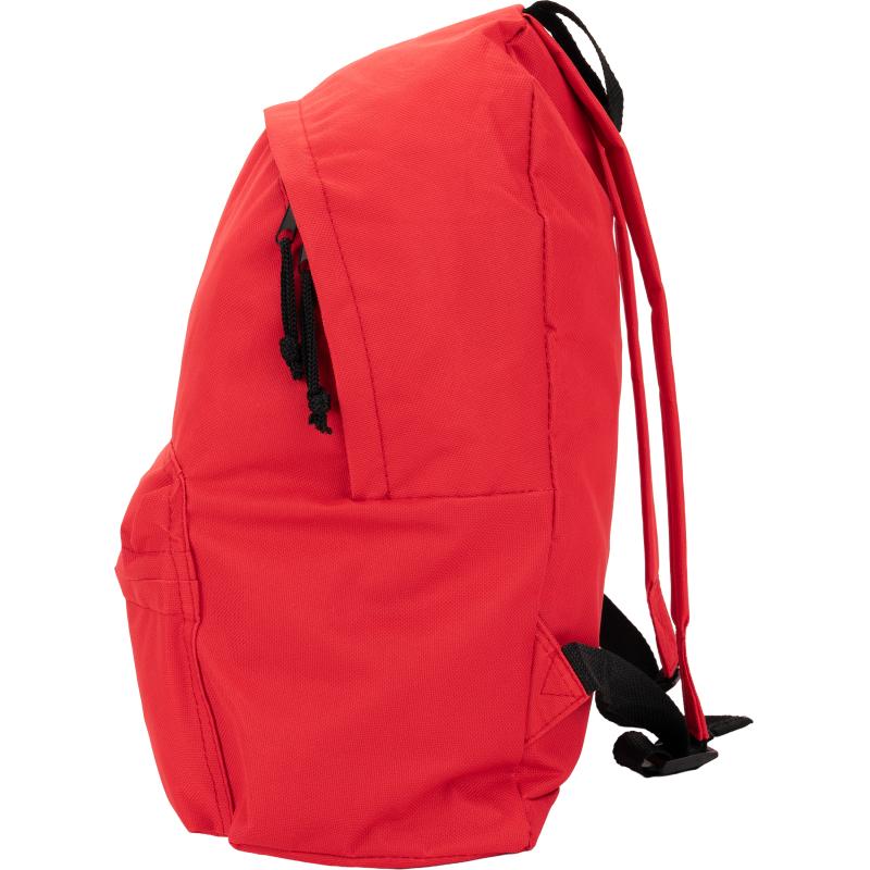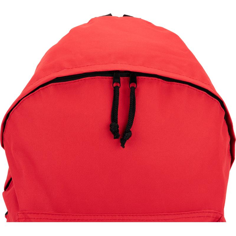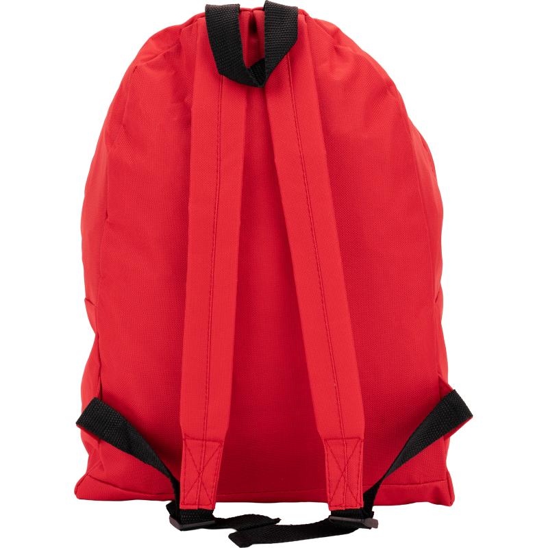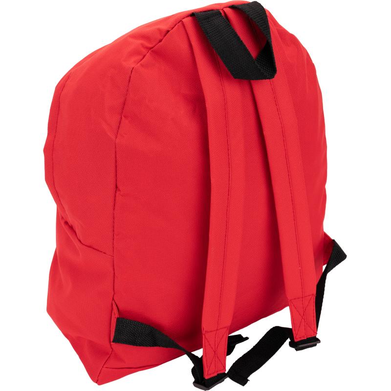 Duży, praktyczny plecak wykonany z mocnego poliestru, wyposażony w miękkie, wygodne paski na ramiona oraz dodatkową kieszeń z przodu.