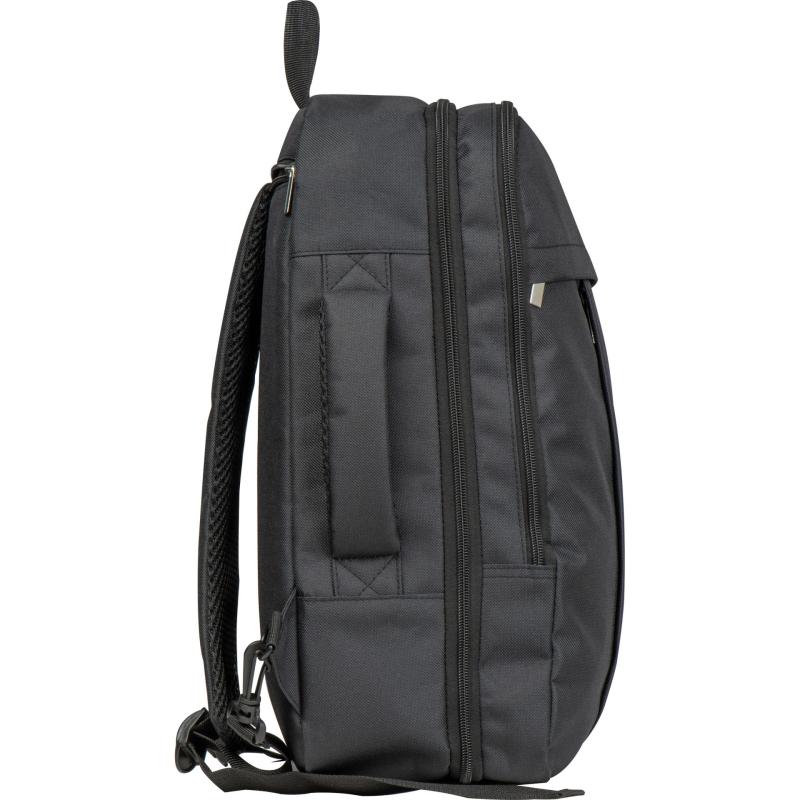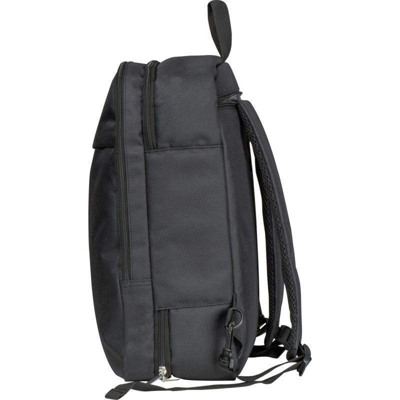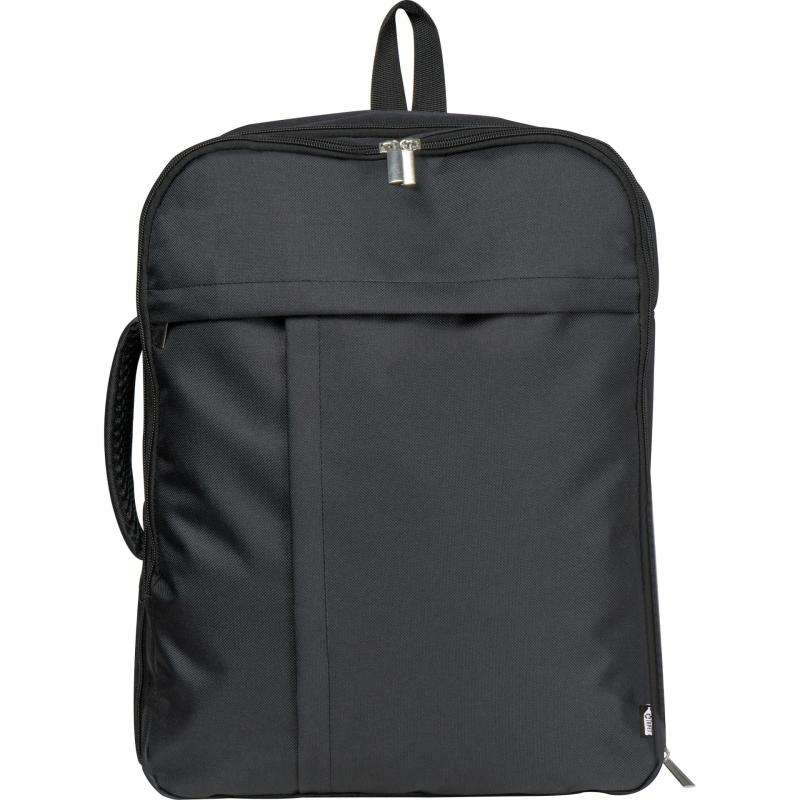 Plecak podróżny otwierany jak walizka, wykonany z RPET. Plecak posiada przegródkę na laptopa oraz pojemną komorę główną. Szelki można ukryć wewnątrz plecaka, dzięki czemu zmienia się w torbę.