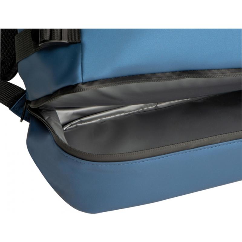 Plecak chłodzący z dużą komorą główną i dodatkową przegródką w dnie, zamykaną na zamek. Boczne paski mocujące zapewniają stabilizację plecaka.