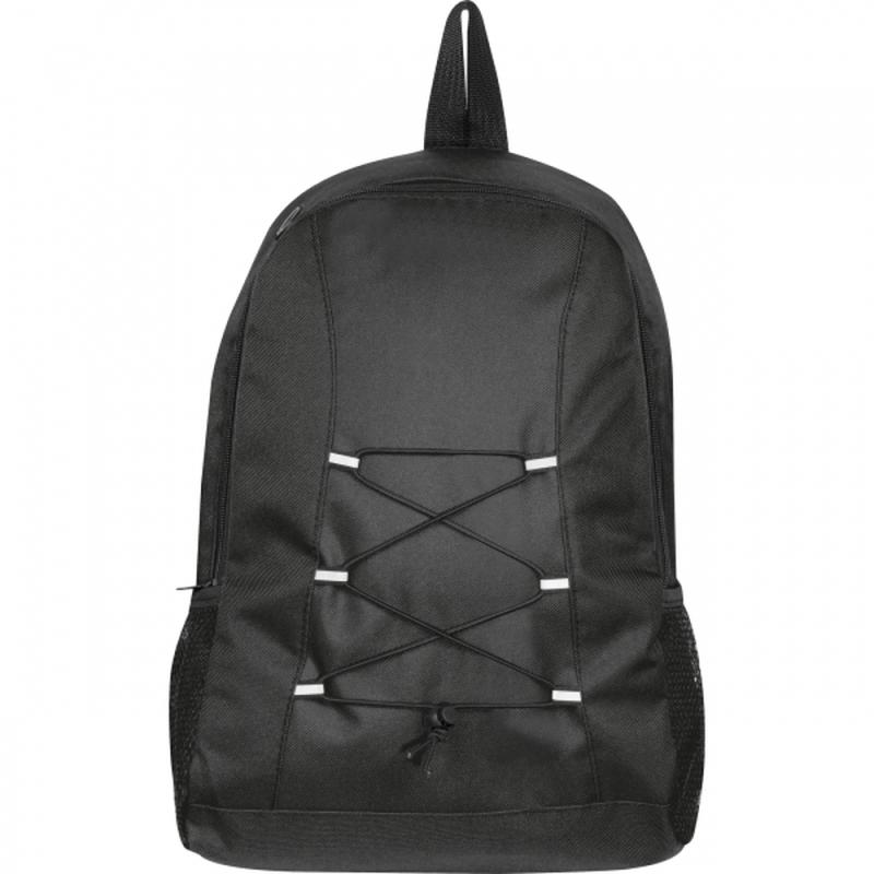 Plecak wykonany z poliestru 600D, pochodzącego z recyklingu. Plecak posiada uchwyt do przenoszenia, dwie siatkowe kieszenie boczne i watowane szelki.