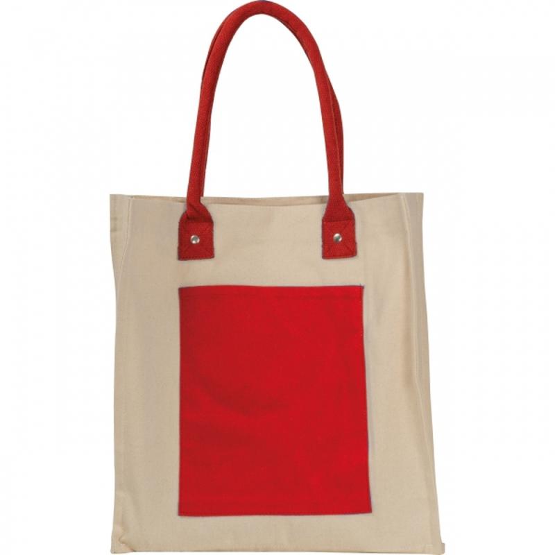 Torba płócienna o gramaturze 320 g/m2, z długimi uszami i kieszonką na przodzie.