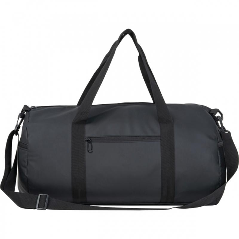 Torba podróżna, wykonana z nieprzemakalnego PU, z bocznymi kieszeniami na zamek.