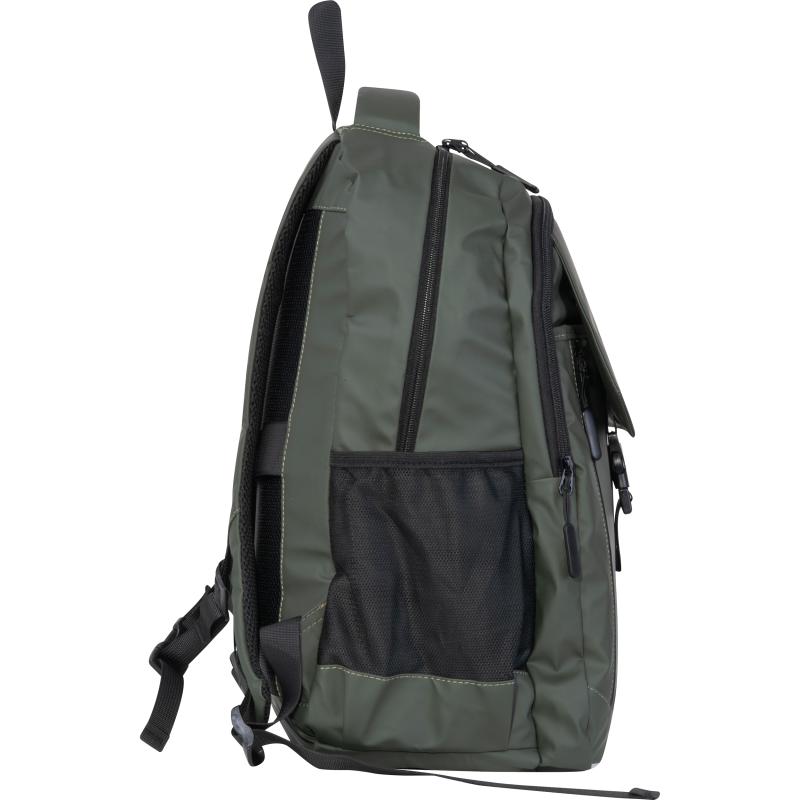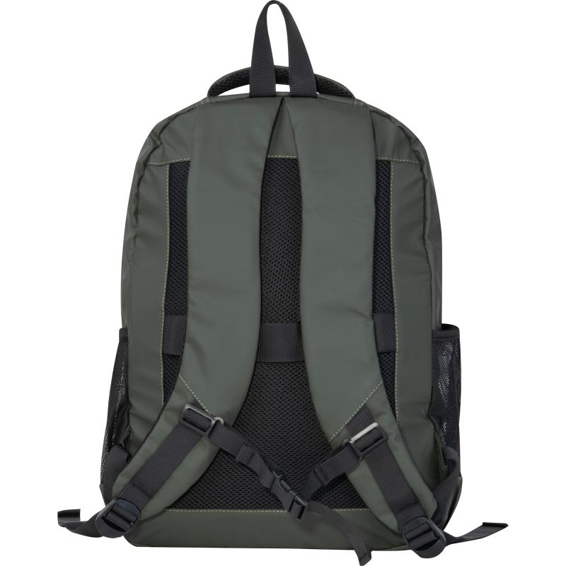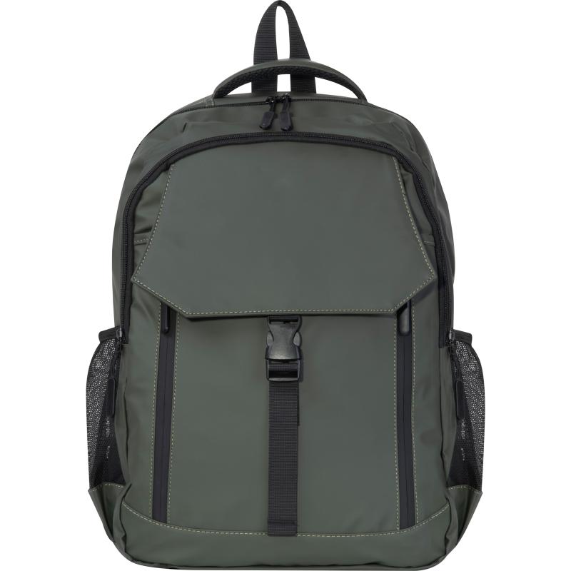 Plecak wykonany z wysokiej jakości, miękkiego w dotyku poliuretanu. Plecak posiada dwie duże komory główne, dwie kieszenie boczne, wodoodporne zamki z przodu, wyściełane paski na ramię, a także przegrodę na laptopa i kieszeń przednią.