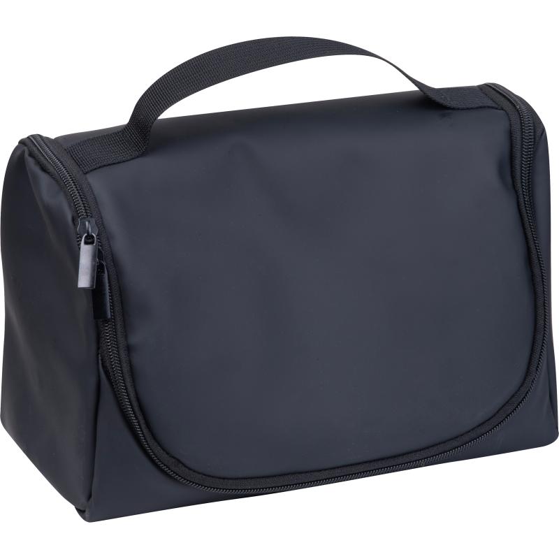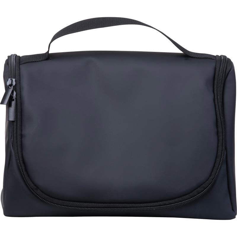 Pojemna kosmetyczka z praktycznym haczykiem do zawieszania, wykonana z PU.