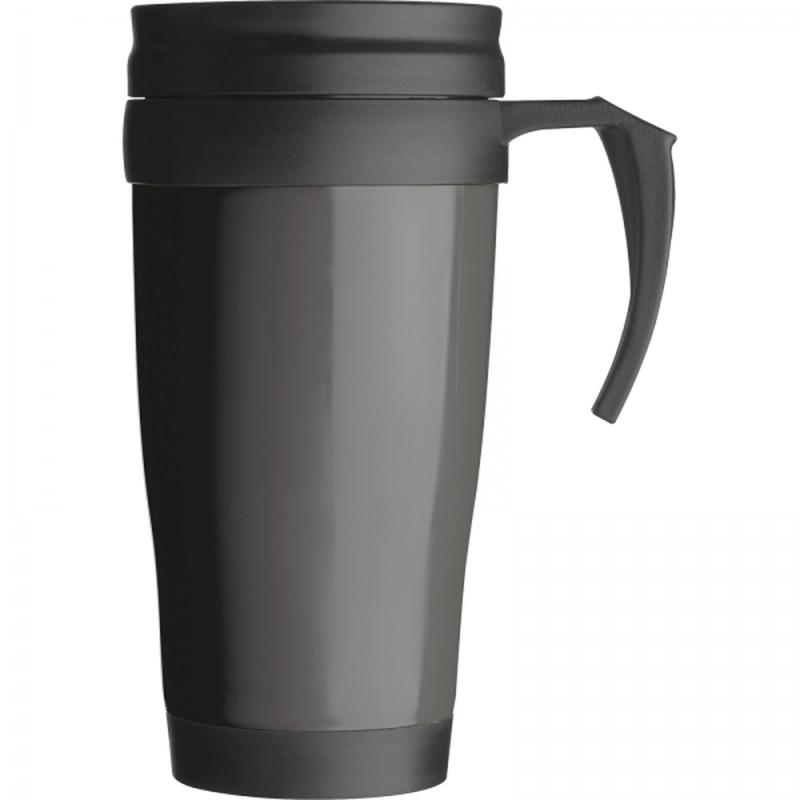 Plastikowy kubek termiczny o pojemności 400 ml, dopasowany do większości uchwytów na napoje w samochodzie.