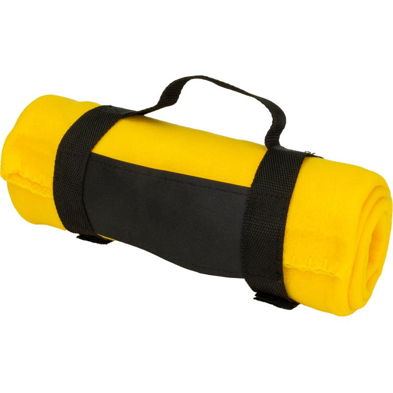 Koc z miękkiego polaru. Posiada praktyczny pasek z uchwytami do noszenia. Gramatura 170 g/m².