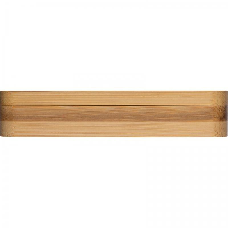 Podróżny zestaw do manicure w bambusowej obudowie. Zestaw zawiera: pilniczek, nożyczki, obcinacz do paznokci i dwa radełka do skórek i paznokci.