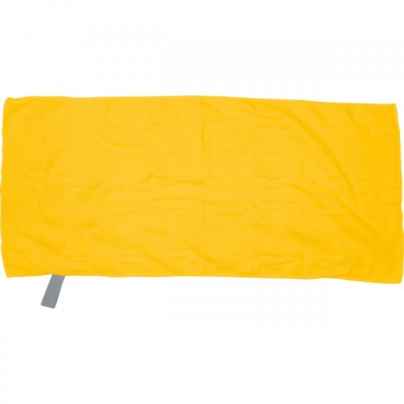 Mały ręcznik (90 x 40 cm), wykonany z mikrofibry o gramaturze 160 g/m², z wszytą gumką, dzięki której można łatwo złożyć ręcznik.