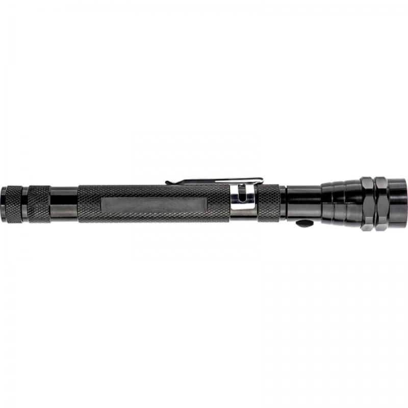 Latarka z 3 diodami LED i teleskopową rączką (dł. 60cm). Posiada głowicę obrotową 360⁰ i magnes, dzięki któremu można przyciągnąć drobne metalowe przedmioty z trudno dostępnych miejsc. Produkt zawiera baterie.