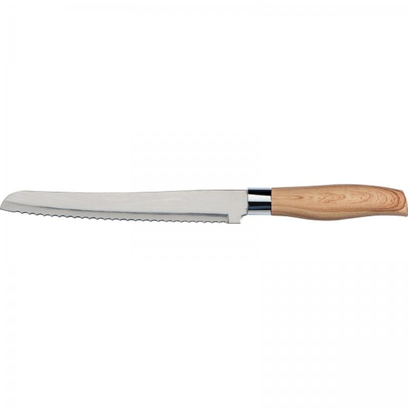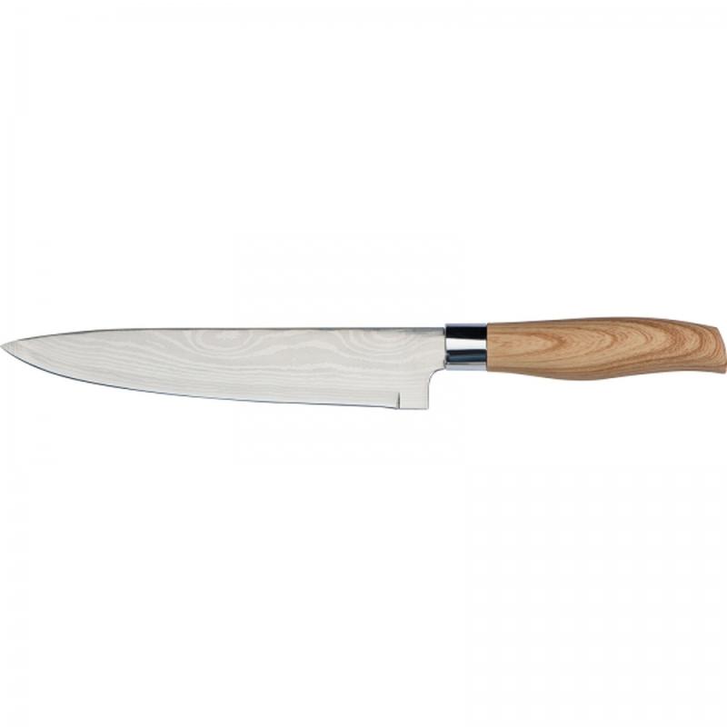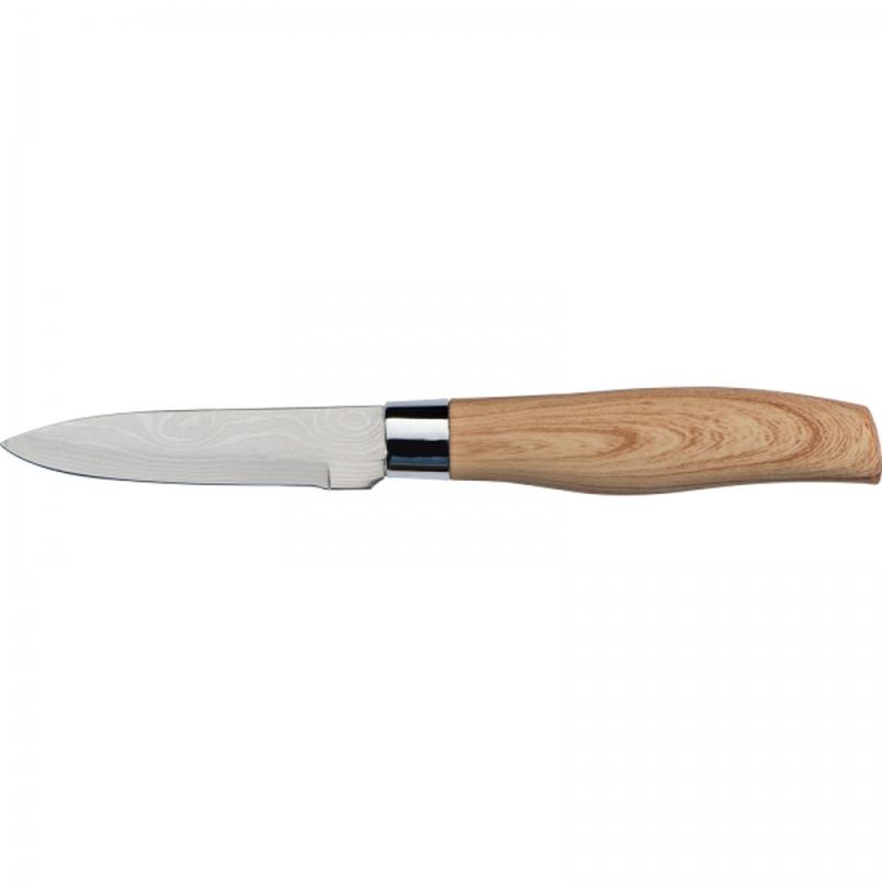 Zestaw 5 noży kuchennych w różnych rozmiarach. Noże posiadają ostrze ze stali nierdzewnej i antypoślizgową rękojeść z tworzywa imitującego drewno.