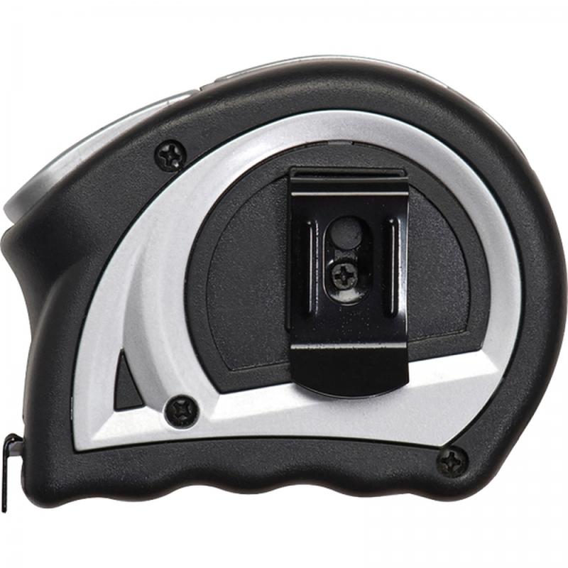 Stalowa taśma miernicza o długości 500 cm z funkcją blokady. Miarka posiada duże cyfry, solidną obudowę z plastiku i metalu oraz pasek do zaczepiania.