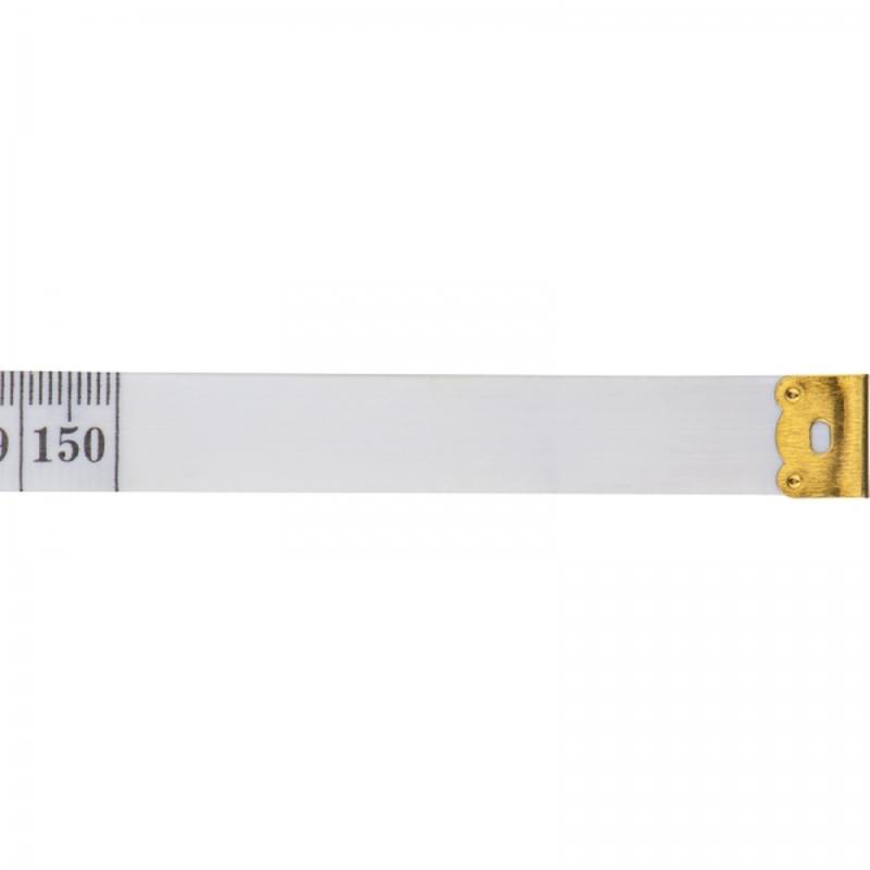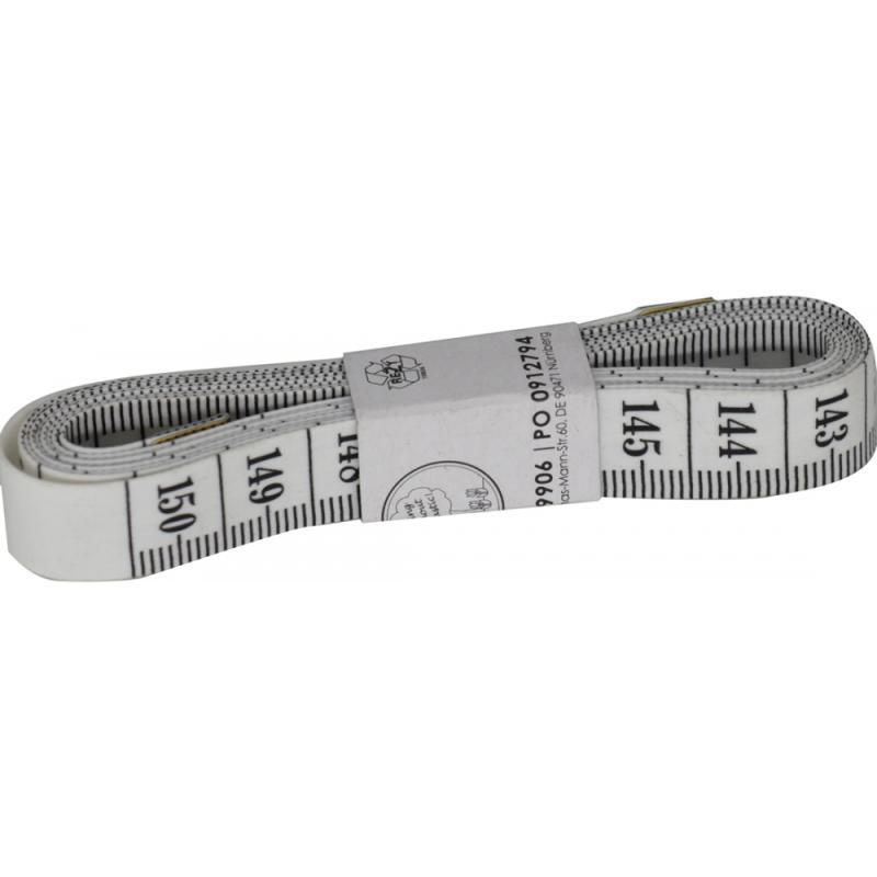 Gumowa miara krawiecka wykonana z PVC. Długość 1,5 m, w papierowej banderoli.