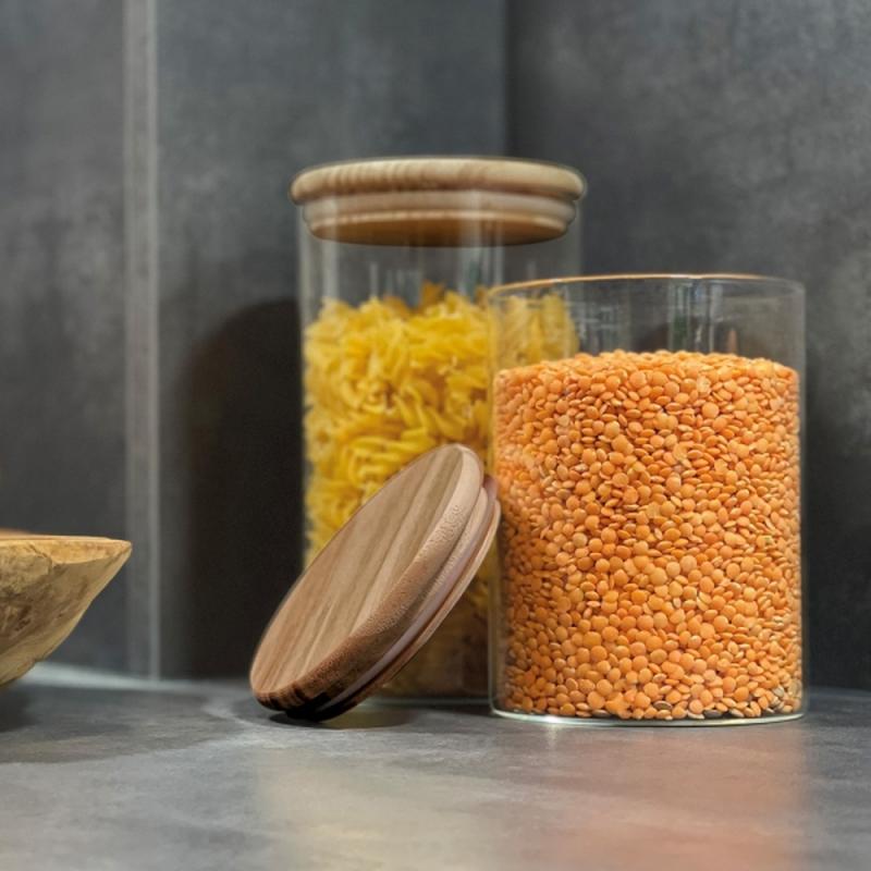 Pojemnik wykonany ze szkła borokrzemianowego z bambusową pokrywką wyposażoną w silikonowy pierścień, który zapewnia szczelność słoika. Pojemność 700 ml.