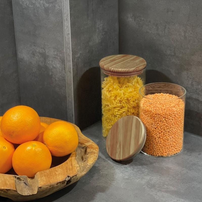 Pojemnik wykonany ze szkła borokrzemianowego z bambusową pokrywką wyposażoną w silikonowy pierścień, który zapewnia szczelność słoika. Pojemność 1000 ml.