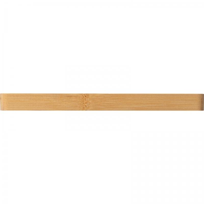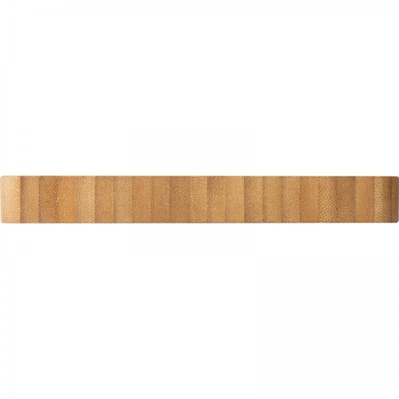 Metalowy dziadek do orzechów z podkładką wykonaną z bambusa.