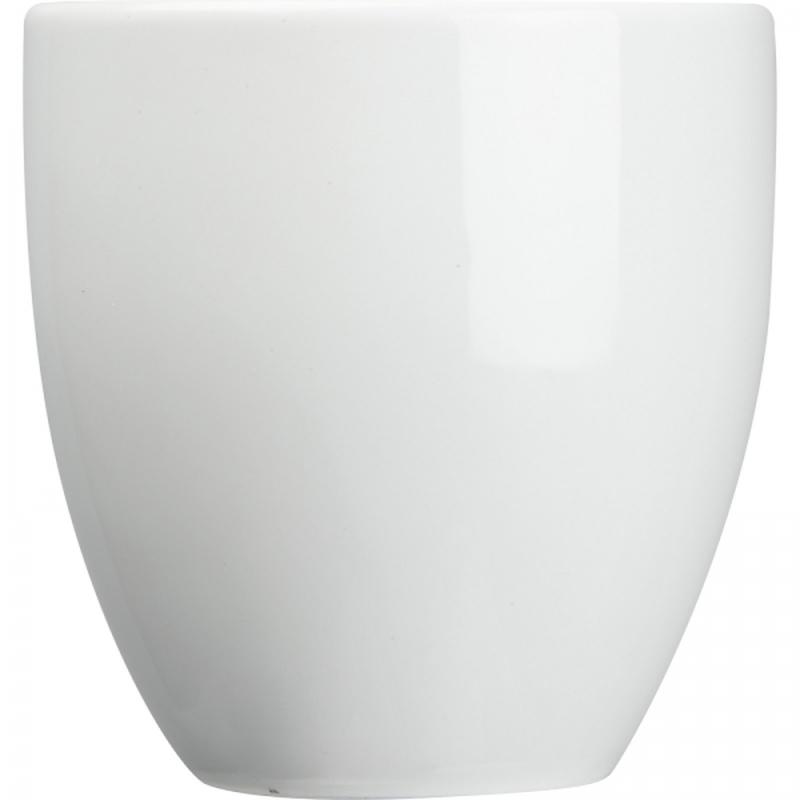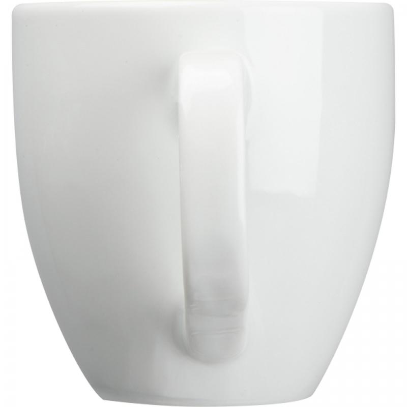 Kubek wykonany z białej porcelany, o pojemności 400 ml.