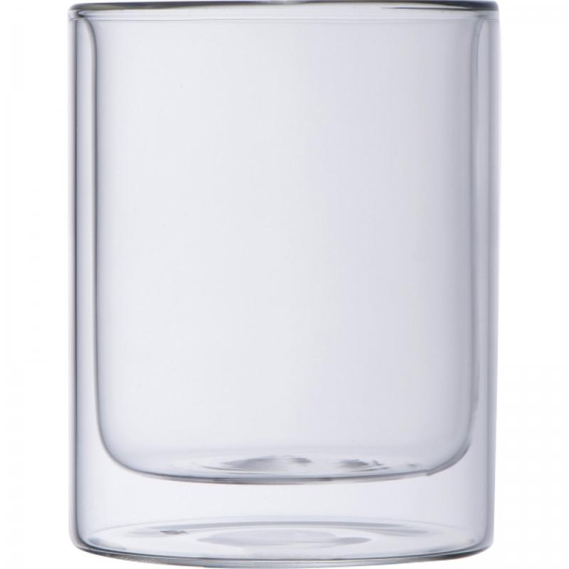 Szklanka z podwójnymi ściankami, wykonana ze szkła borokrzemowego, o pojemności 330 ml.