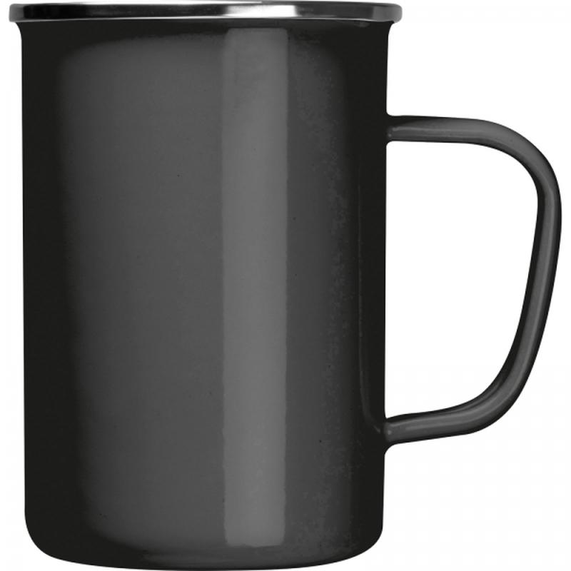 Kubek metalowy w stylu retro, idealny do outdoorowych aktywności, emaliowany, o pojemności 550 ml.