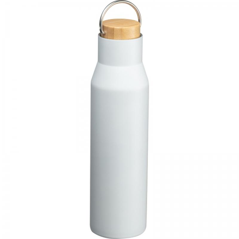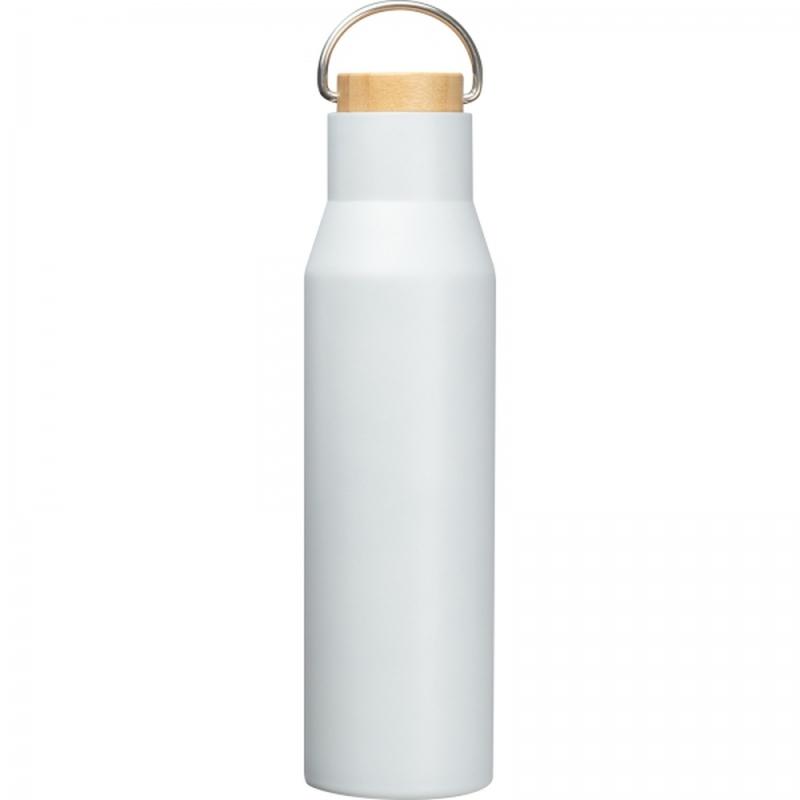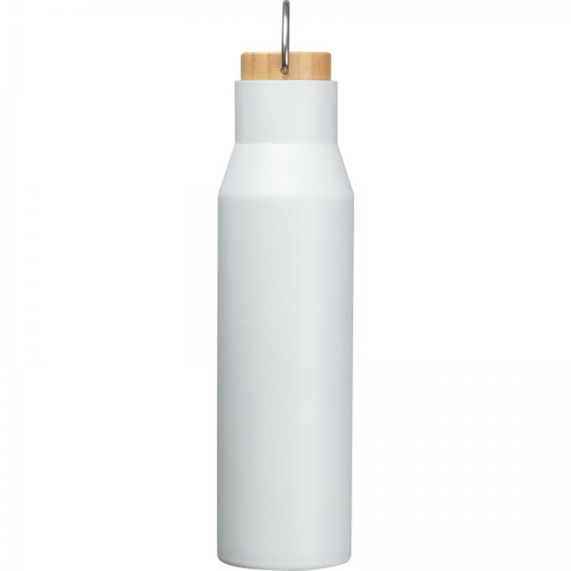 Butelka termiczna z izolacją próżniową, wykonana ze stali nierdzewnej pochodzącej z recyklingu, z bambusowym zamknięciem. Pojemność 550 ml.