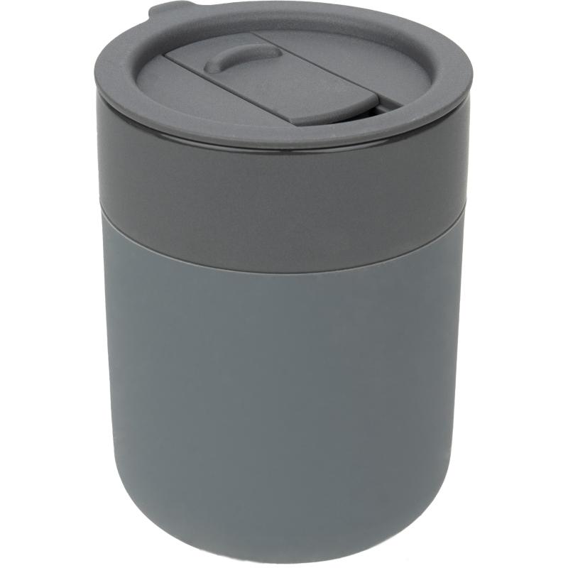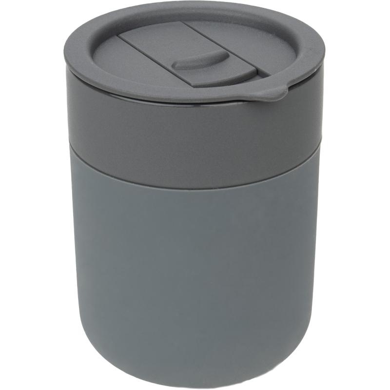 Kubek ceramiczny, o pojemności 340 ml, z silikonowym rękawem i zamykanym ustnikiem.